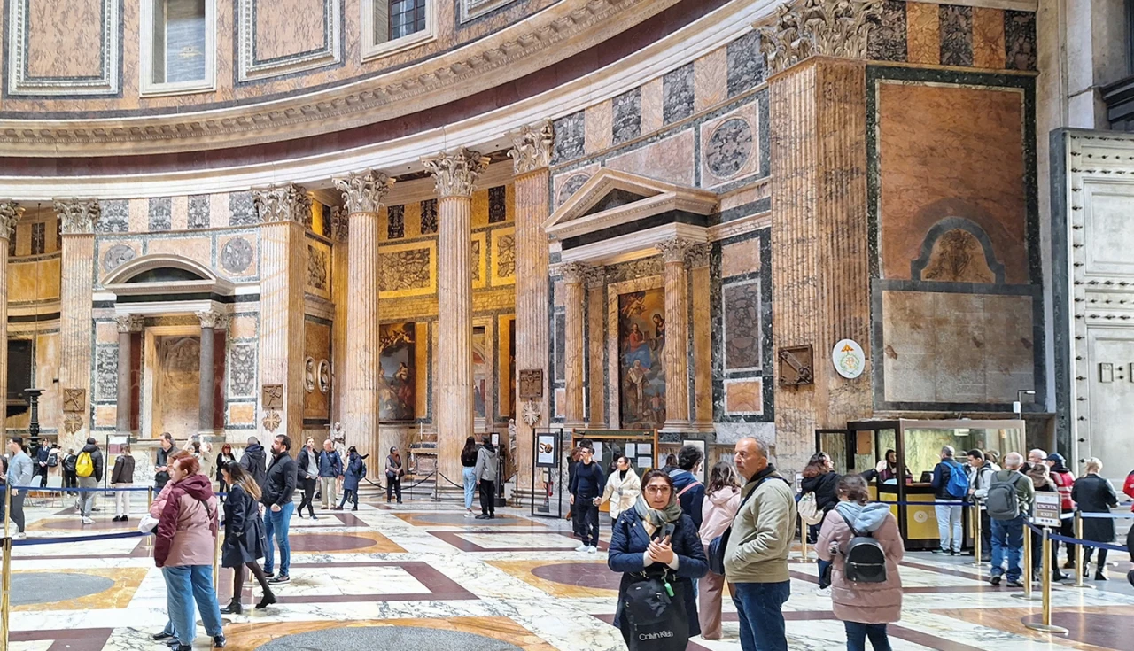 Ao entrar, a sensação é de diminuição perante a escala do edifício. O chão de mármore colorido e as proporções perfeitas (a altura é igual ao diâmetro) trazem uma harmonia rara. É um local de silêncio e contemplação, mesmo com o fluxo constante de turistas.